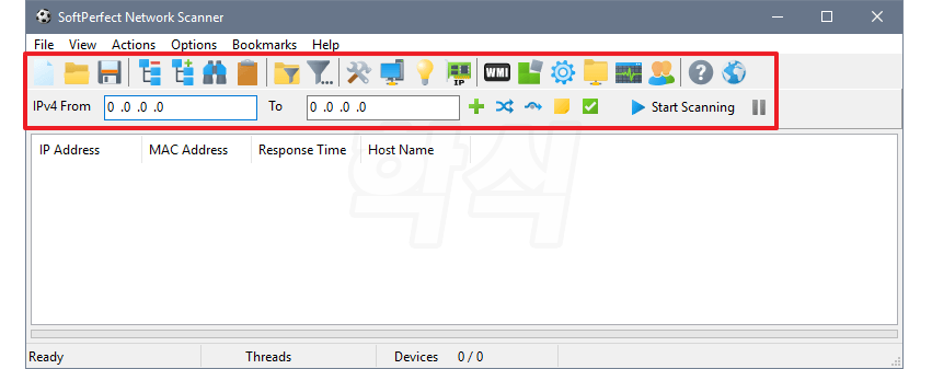 소프트퍼펙트 네트워크 스캐너 메뉴얼 - 시작화면 버튼