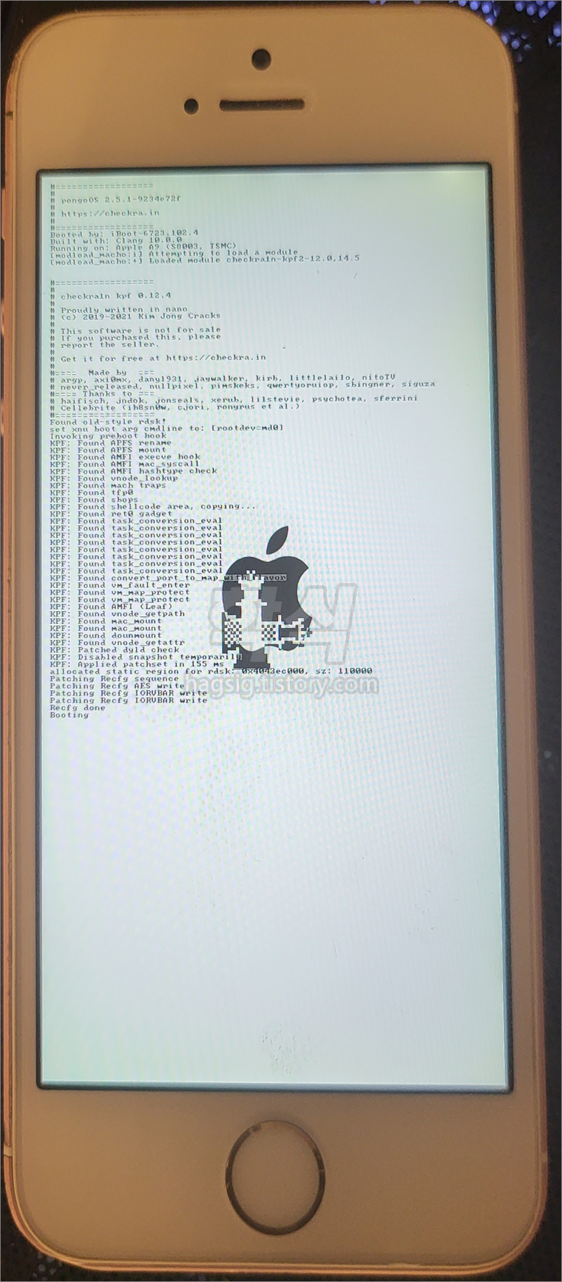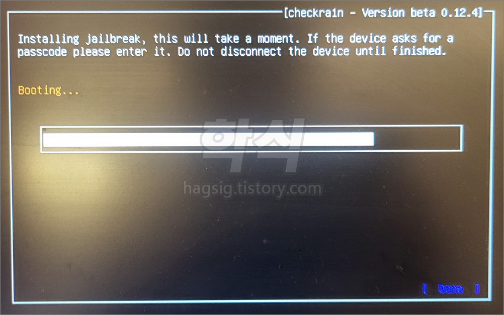 - 아래와 같은 화면이 뜨면서 탈옥이 진해된다. 완료 시 재부팅이 된다.