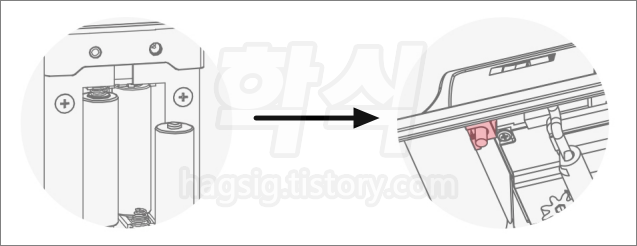 - 서랍 뒷면에 존재하는 '배터리부'에서 배터리를 하나 뺀다.