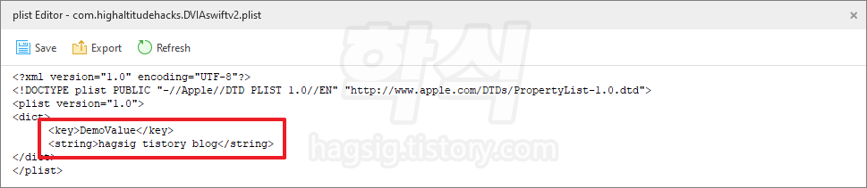위 경로로 이동하여 com.highaltitudehacks.DVIAswiftv2.plist 파일을 더블클릭.