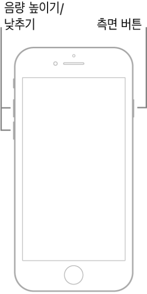 음량 낮추기 버튼과 잠자기/깨우기 버튼을 동시에 길게 누름. Apple 로고가 나타나면 버튼에서 손을 땜.
