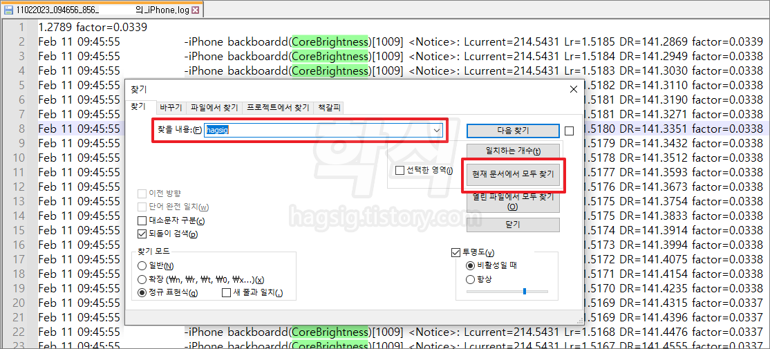 DVIA_v2앱의 Device Logs에 입력한 데이터가 로그에 있는지 검색 기능을 통해 확인한다.