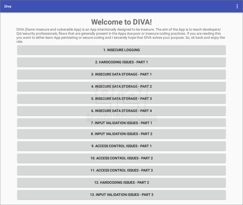 DIVA (Damn insecure and vulnerable App) is an App intentionally designed to be insecure - GitHub - 0xArab/diva-apk-file: DIVA (Damn insecure and vulnerable App) is an App intentionally designed to ...