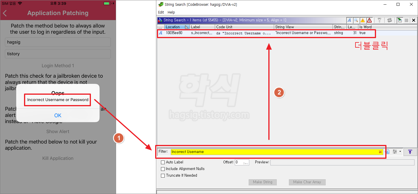 - 바이너리 파일에는 앱 실행 및 동작에 필요한 모든 데이터들이 들어가 있으므로 바이너리 파일을 수정하여 로그인 메소드, 탈옥 탐지 메소드 등을 우회할 수 있다.