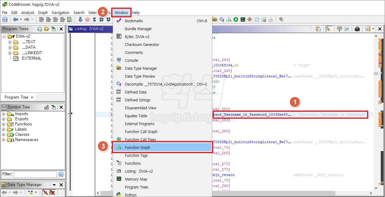 - 더블클릭 시 음영표시된 칸을 선택 → Window 클릭 → Function Graph 클릭