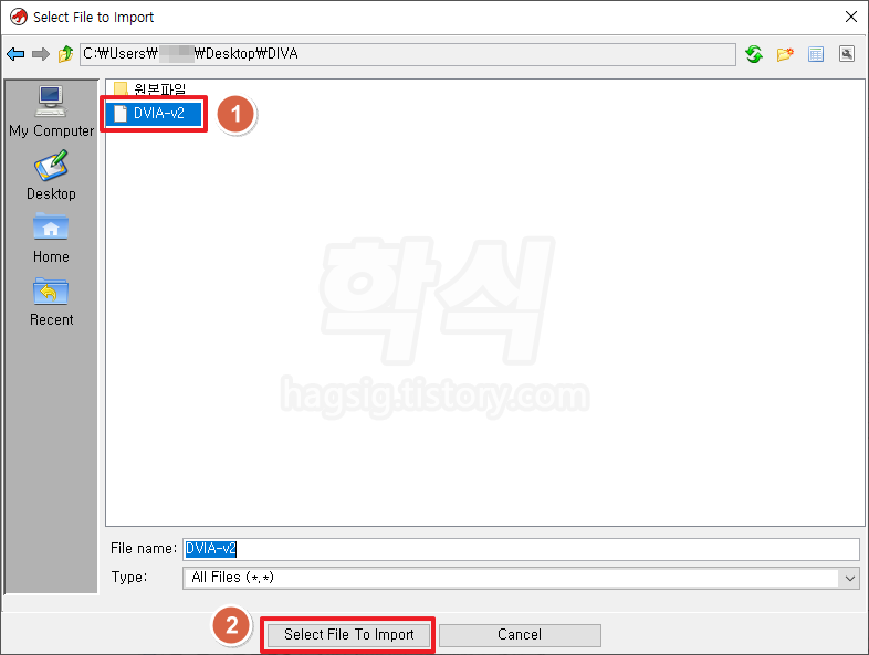 - 위에서 추출한 바이너리 파일 선택 → Select File To Import 버튼 클릭
