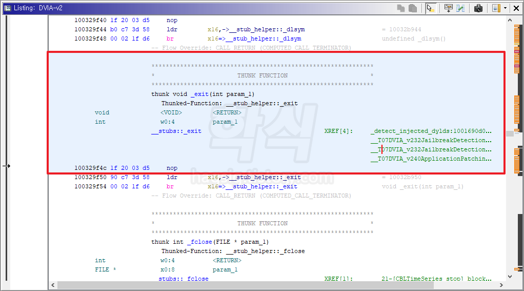 - "__stubs::_exit"을 더블클릭한다.