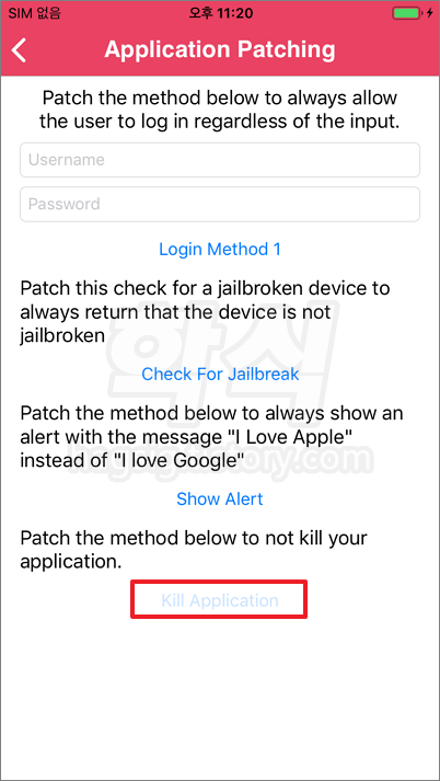 - Kill Application과 관련된 문구가 있는지 검색.