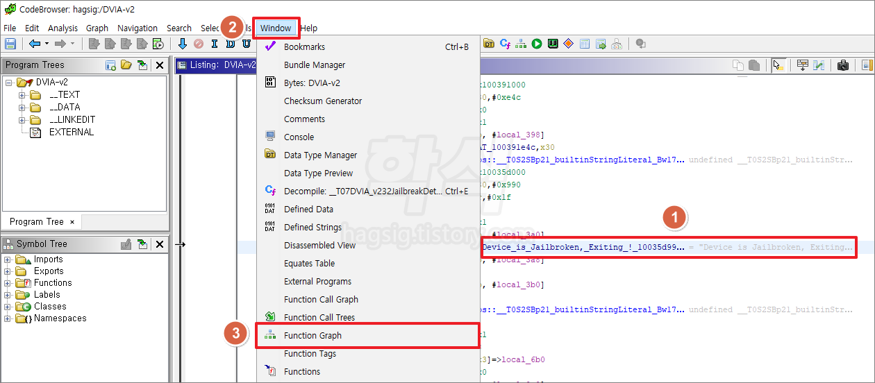 - 음영표시된 칸의 우측 "XREF[1]: __T07DVIA_v232JailbreakDetection..."을 더블클릭한다.