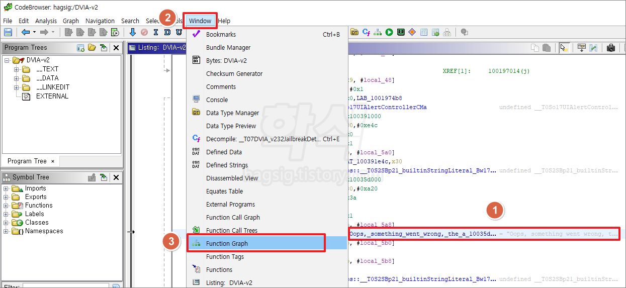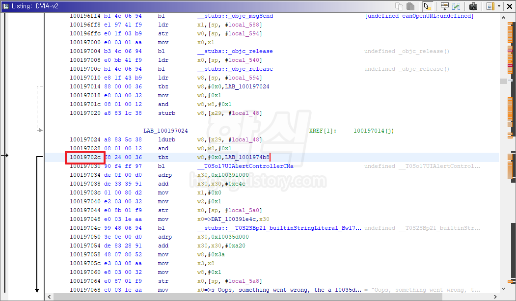 - 음영표시된 칸의 우측 "XREF[1]: __T07DVIA_v232JailbreakDetection..."을 더블클릭한다.