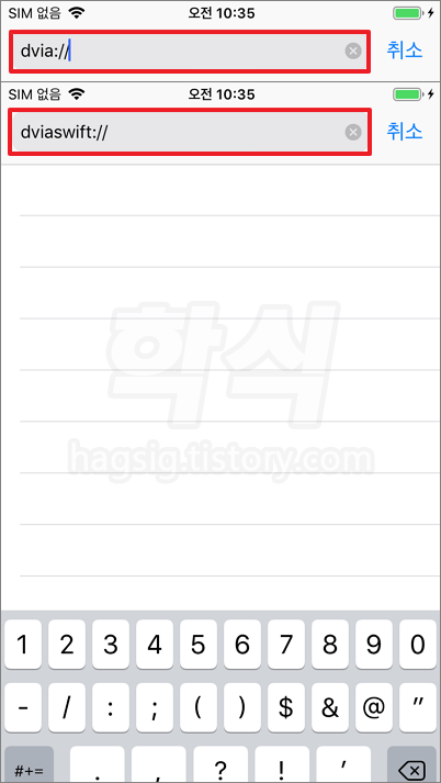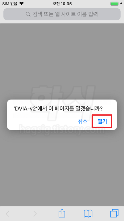 - 위에서 확인한 DVIA-v2 앱의 스키마를 사파리 브라우저에 입력한다.