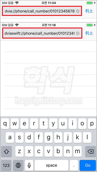 * 커스텀 URL 스키마 호출 형태 : /phone/call_number/
