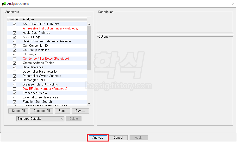 - 설정내용을 아무것도 건드리지 않고 Analyze 버튼 클릭 → 분석이 종료될 때까지 대기(우측 하단에 진행률이 표시됨).