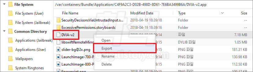 - 3uTools Files에서 Applications(User) 클릭 또는 탐색창에 /var/Containers/Bundle/Application 입력한다.