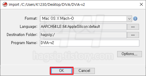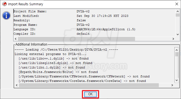 - 위에서 추출한 바이너리 파일 선택 → Select File To Import 버튼 클릭