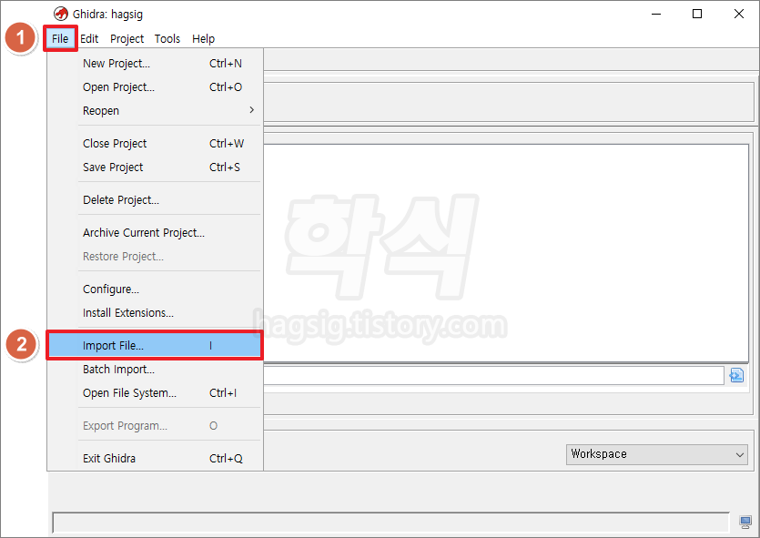 - 아래의 과정을 따라하여 추출한 바이너리 파일을 기드라(Ghidra)를 통해 분석한다.