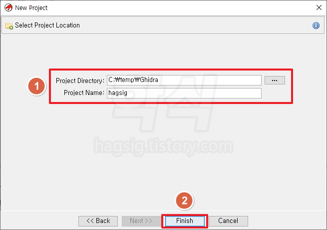 - Project Directory 경로지정 → Project Name 입력 → Finish 클릭 → File 클릭 → Import File 클릭