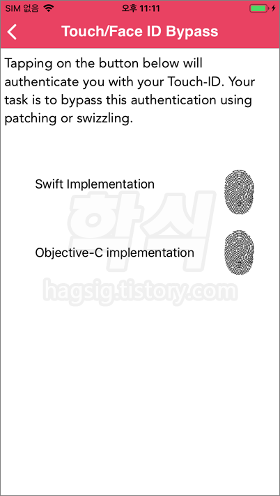 - 화면 우측 "Swift Implementation", "Objective-C implementation"의 지문모양을 클릭한다.