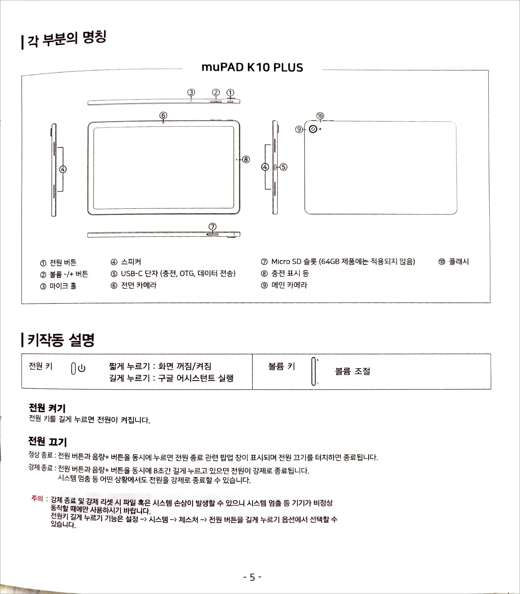 | SD카드 | 없음 (muPAD K1O PLUS 64GB) Micro SD 최대 2TB 지원 (muPAD K1O PLUS 128GB) |