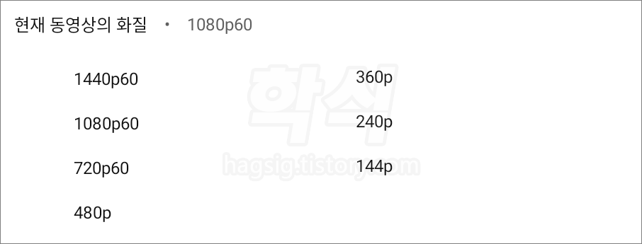 - 1440p60, 1080p60, 720p60, 480p, 360p, 240p, 144p의 해상도를 지원한다.