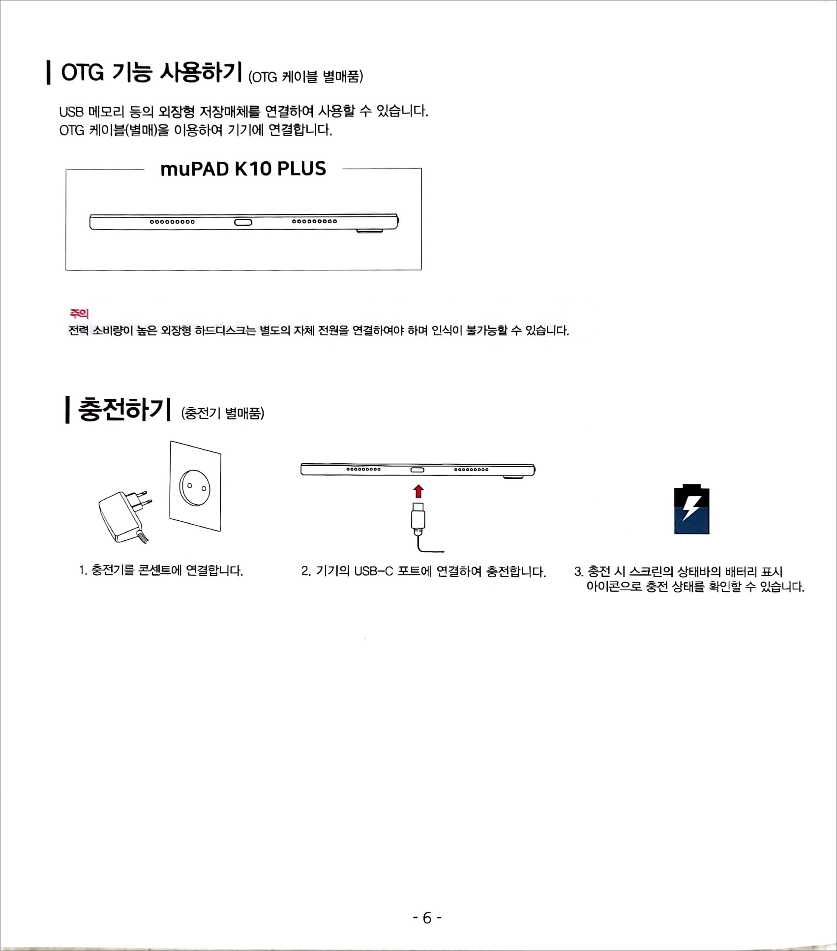 - OTG 사용 가능(USB 메모리 등의 외장형 저장매체를 연결하여 사용).