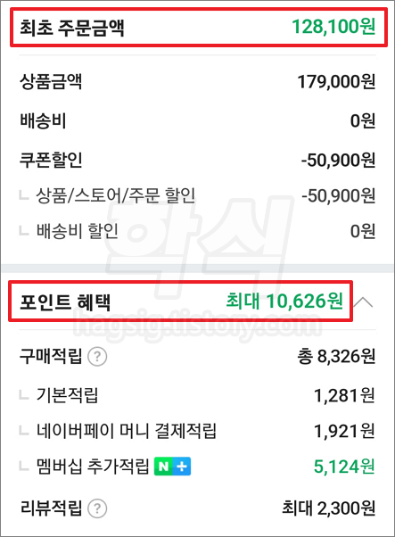 - 최종 구매가 : 117,474원(128,100 - 10,626 = 117,474)