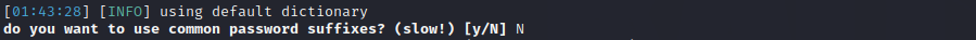 - 비밀번호 뒤에 붙는 접미사도 필요한지 물어보고 있다. 느리다고 하니 N을 입력한다.
