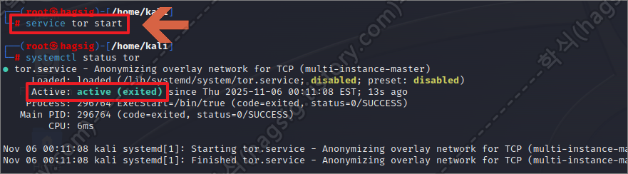 - 아래의 명령어를 이용하여 tor를 설치한다.