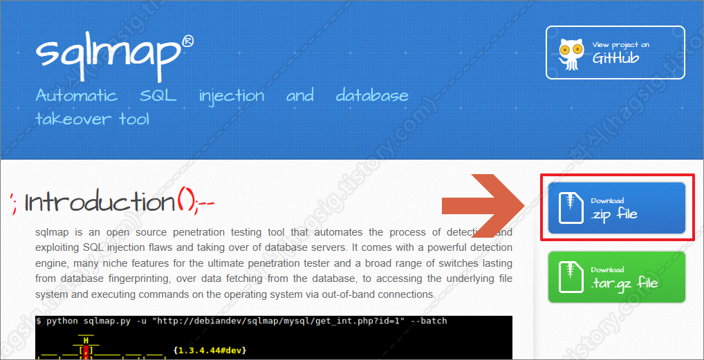 - 아래의 링크에 접속하여 SQLMap.zip을 다운로드한다.
