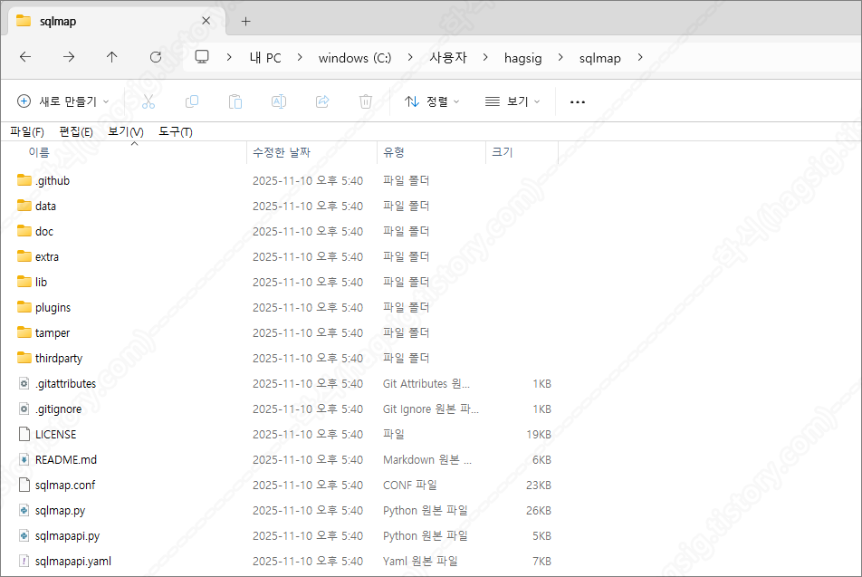 - 다운로드한 SQLMap 압축파일을 위에서 생성한 경로에 해제한다.
