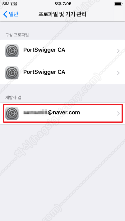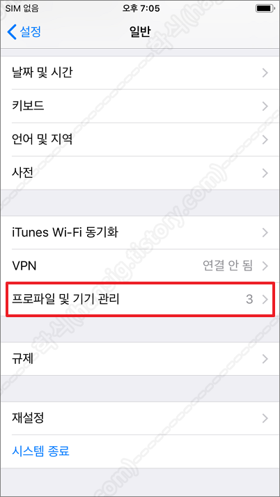 - 설정(Settings) → 일반(General) → 기기 관리(Device Management) 메뉴로 이동한다.