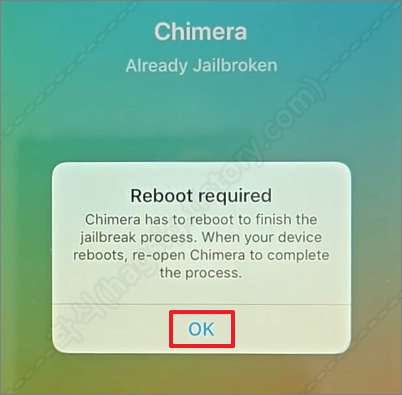 - 재부팅이 완료되면 다시 Chimera 앱을 실행하여 [Jailbreak] 버튼을 누른다.