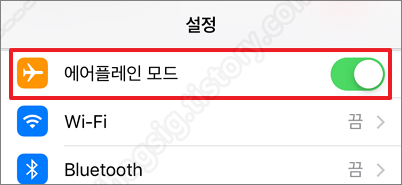 - 아래의 사진과 같이 비행기 모드를 활성화한다.