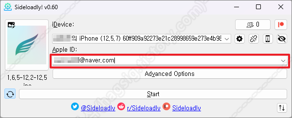 - Apple ID 입력란에 본인이 사용하는 애플 계정 이메일주소를 입력한 뒤, 하단의 [Start] 버튼을 누른다.