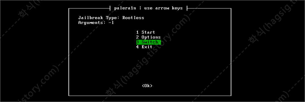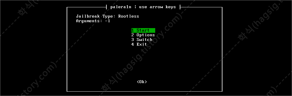 - 탈옥 방식을 선택하였다면 'Start'를 선택한뒤 엔터를 누른다.