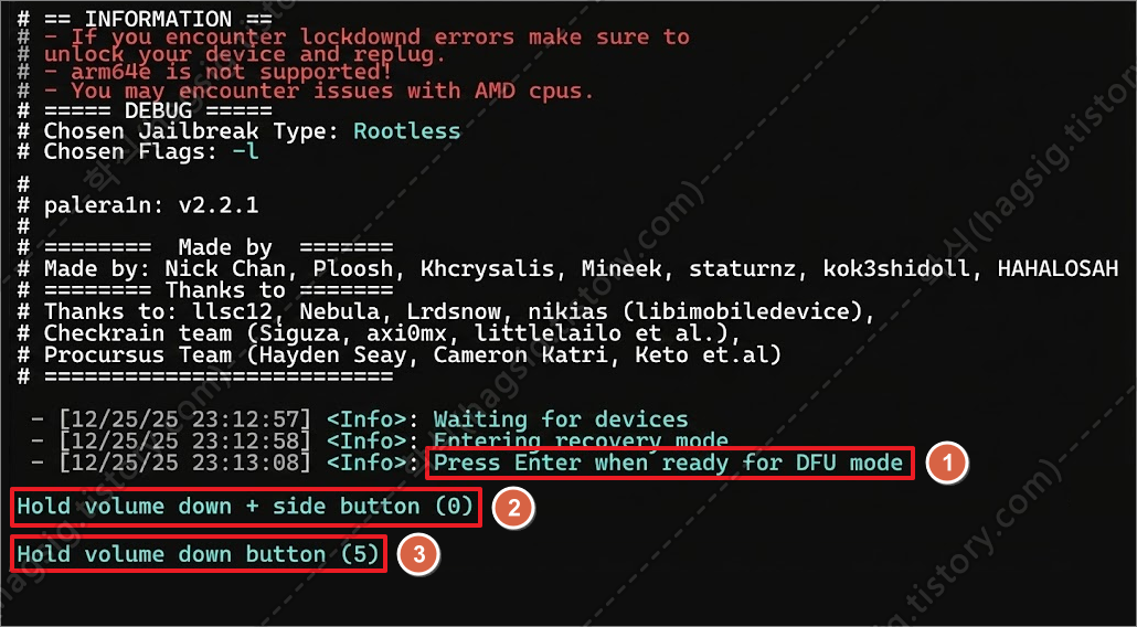 2. Palera1n 탈옥 진행