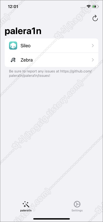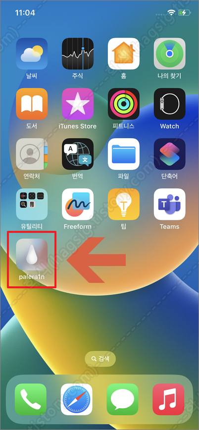- 아래와 같이 iOS기기에서 탈옥이 진행된 후, 메인화면에 palera1n 앱이 보이게 된다.
