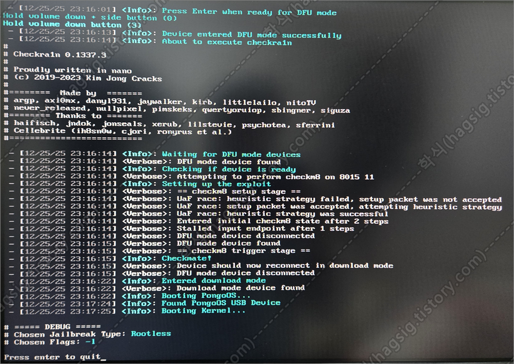 - 아래와 같이 뜬다면 탈옥이 완료된 것이다. 엔터를 눌러 작업을 마무리한다.