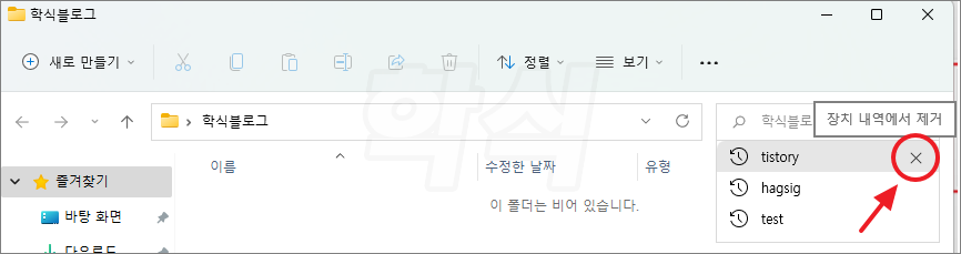 검색 기록 옆에 있는 'X'를 눌러 지운다.