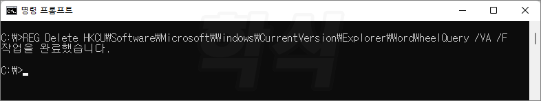 위와 같은 명령어를 입력한 다음 엔터를 눌러 실행시켜준다. 명령어 실행 시 검색기록이 삭제된 것을 확인할 수 있다.